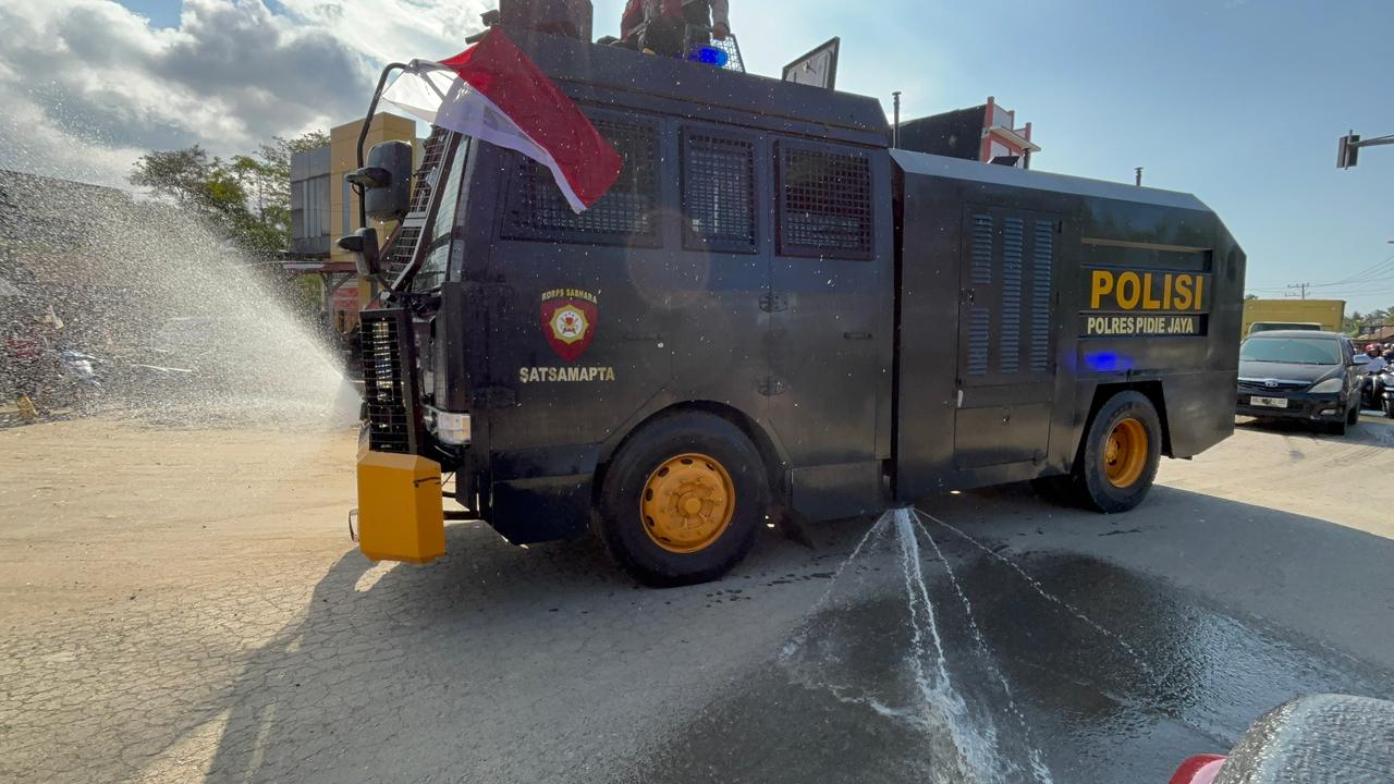 AKP Mahruzar menegaskan bahwa kegiatan penyiraman jalan ini juga bertujuan menjaga kelancaran arus lalu lintas serta mendukung terciptanya situasi kamtibmas yang aman dan kondusif di wilayah Kabupaten Pidie Jaya pascabencana.