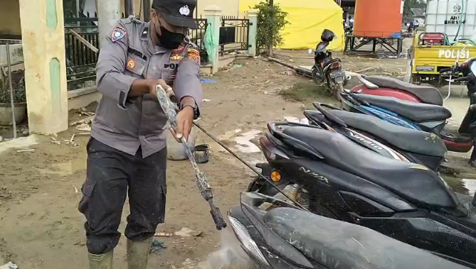 Bengkel dan Cuci Motor Mobile Polres Aceh Tamiang Untuk Masyarakat Terdampak Banjir