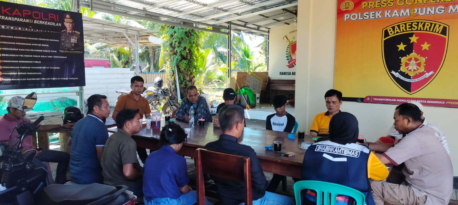 Kota Bengkulu – Bhabinkamtibmas Kelurahan Padang Serai Polsek Kampung Melayu Aipda Veny Asyuarga Kasda bersama Kanit Binmas Polsek Kampung Melayu Ipda Ipan Situmorang memfasilitasi mediasi dan musyawarah adat terkait sanksi terhadap warga yang melanggar norma adat di wilayah Kelurahan Padang Serai. Kegiatan berlangsung di Kantor Polsek Kampung Melayu, Jalan Semangka RT 11 RW 03 Kelurahan Padang Serai Kecamatan Kampung Melayu, Jumat (31/10/2025).