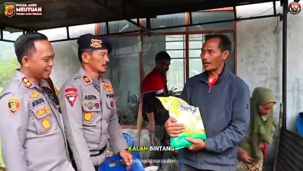 Takengon – Kapolres Aceh Tengah AKBP Muhamad Taufiq, S.I.K., M.H., menyalurkan langsung bantuan sembako kepada warga terdampak bencana banjir, banjir bandang, dan tanah longsor di Kecamatan Bintang, Kabupaten Aceh Tengah, Selasa (2/12/2025).