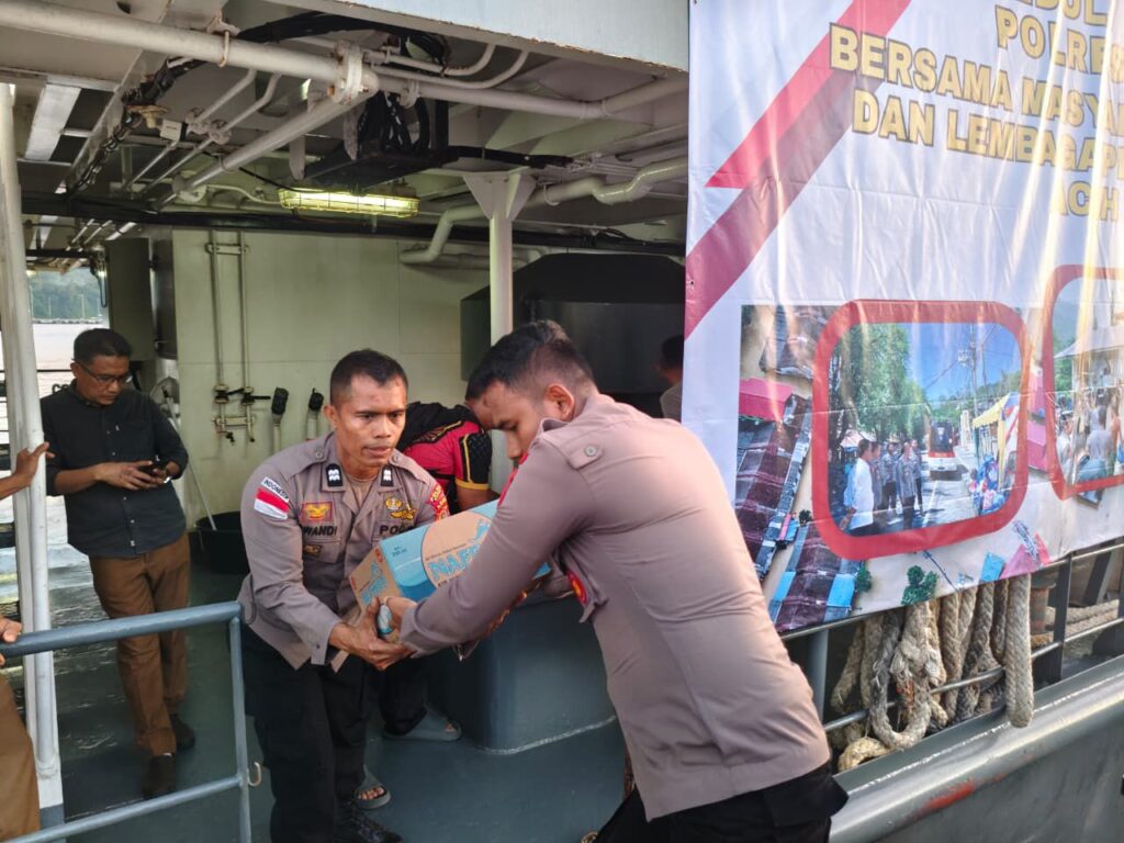Sabang – Polres Sabang resmi melepas bantuan kemanusiaan berupa sembako, obat-obatan, pakaian, dan perlengkapan penting lainnya untuk masyarakat di sejumlah wilayah Aceh yang terdampak banjir dan longsor, di Dermaga CT-1 BPKS, Jln.Perkapalan Gp.Kuta Barat Kec. Sukakarya Kota Sabang, menggunakan armada KP. Wisanggeni 8005 Mabes Polri, Rabu (03/12/2025).