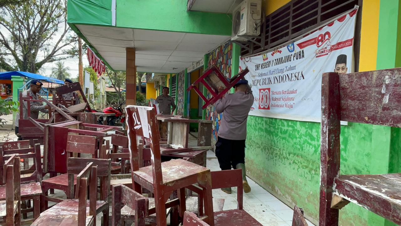 Kegiatan pembersihan yang dilakukan oleh personel Brimob Polda Sumut telah memasuki hari kelima, dengan fokus membersihkan ruang kelas, halaman sekolah, saluran air, serta fasilitas pendukung lainnya. Upaya ini dilakukan secara bertahap dan maksimal agar lingkungan sekolah kembali bersih, aman, dan layak digunakan. Direncanakan, dalam dua hari ke depan, SMP Negeri 1 Tanjung Pura sudah dapat dipergunakan kembali untuk kegiatan belajar mengajar, menyambut tahun ajaran baru.