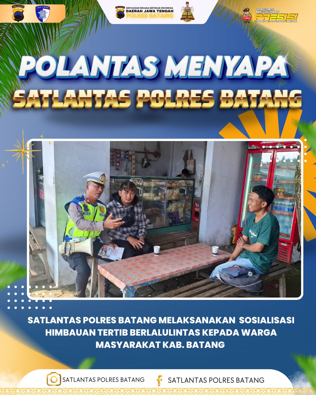 Satlantas Polres Batang berkomitmen untuk terus menghadirkan pelayanan yang humanis, komunikatif, dan responsif sebagai bagian dari upaya mewujudkan budaya tertib berlalu lintas di Kabupaten Batang.