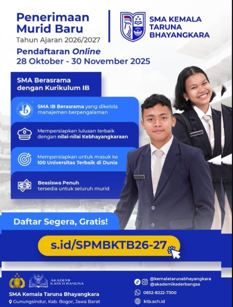 TBnews, BENGKULU – SMA Kemala Taruna Bhayangkara resmi membuka Penerimaan Murid Baru (PMB) untuk Tahun Ajaran 2026/2027.