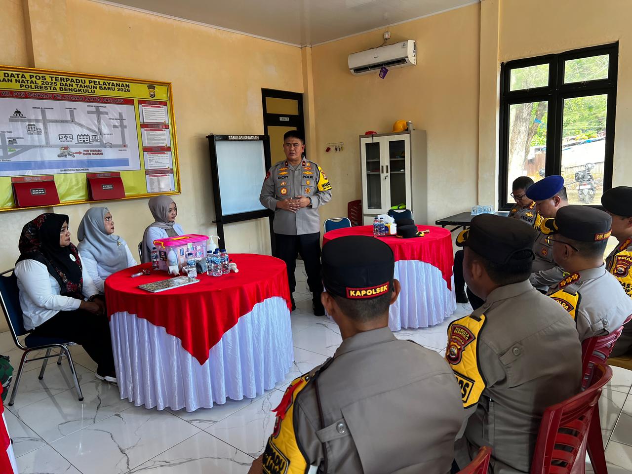 Pantauan Humas Polresta Bengkulu, Brigjen Pol Dicky Sondani, S.I.K., M.H pada hari ini, Rabu (24/12) mengecek Pos Pengaman dan Pelayanan yang ada di Kota Bengkulu.